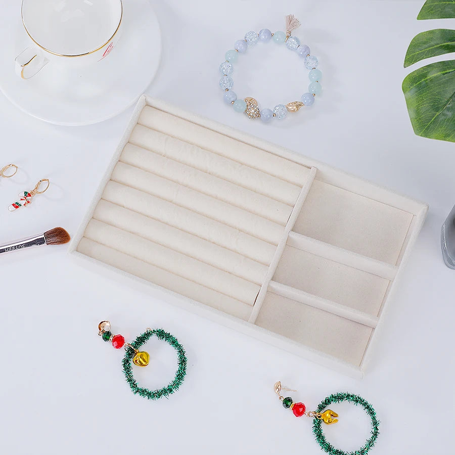 1PC, Flocking Jewelry Box Jewelry Tray, Color: Beige