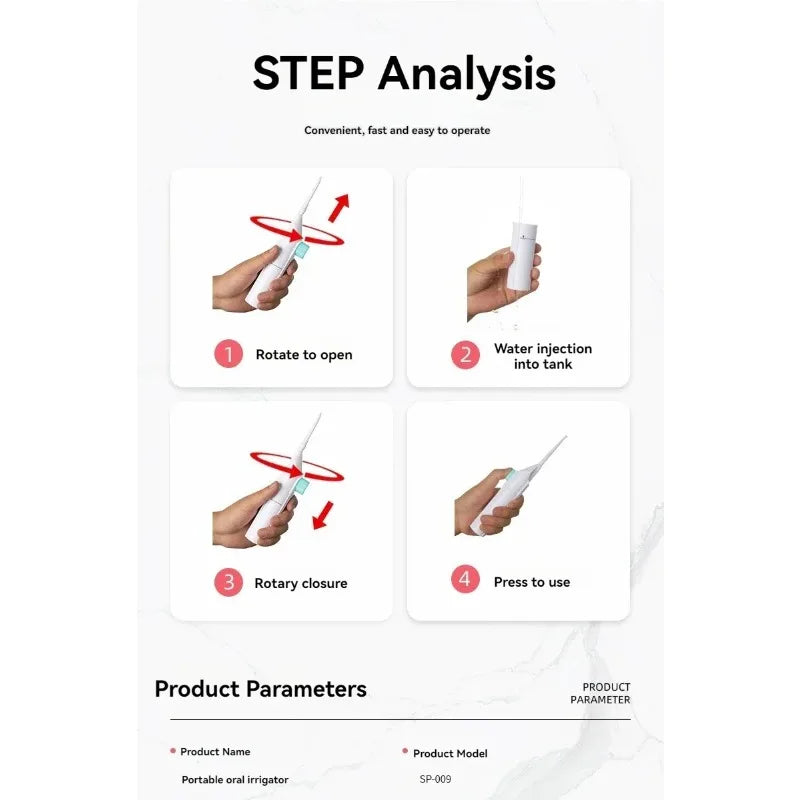 1PC Portable High-Pressure Oral Irrigator Manual Water Flosser Toothpick Style Deep Cleaning Gums & Teeth Care