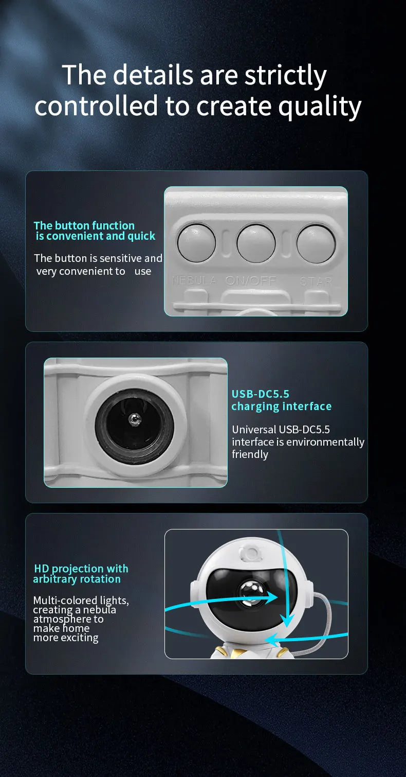 LED Star Galaxies Projector Night Light Astronaut Starry Sky Bedroom Room Decor Children's Gift - LED Atmosphere Creating Lamp